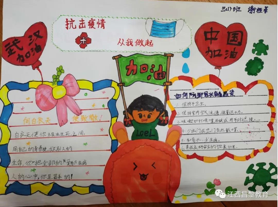2020年伊始,新型冠狀病毒感染的肺炎疫情突襲武漢并迅速蔓延,疫情防控阻擊戰(zhàn)遂在全國上下打響。面對疫情防控的嚴峻形勢,居家防疫的昌黎小學生積極響應大隊部的號召,童心戰(zhàn)“疫”,以畫聚心,紛紛拿起畫筆創(chuàng)作防疫宣傳畫,用自己的畫筆禮贊英雄、用稚嫩的筆觸和五彩的顏色攜手匯聚成鼓舞人心的強大力量,向奮戰(zhàn)在抗疫一線的醫(yī)護工作者、守護我們生命與健康的最美逆行人致敬!